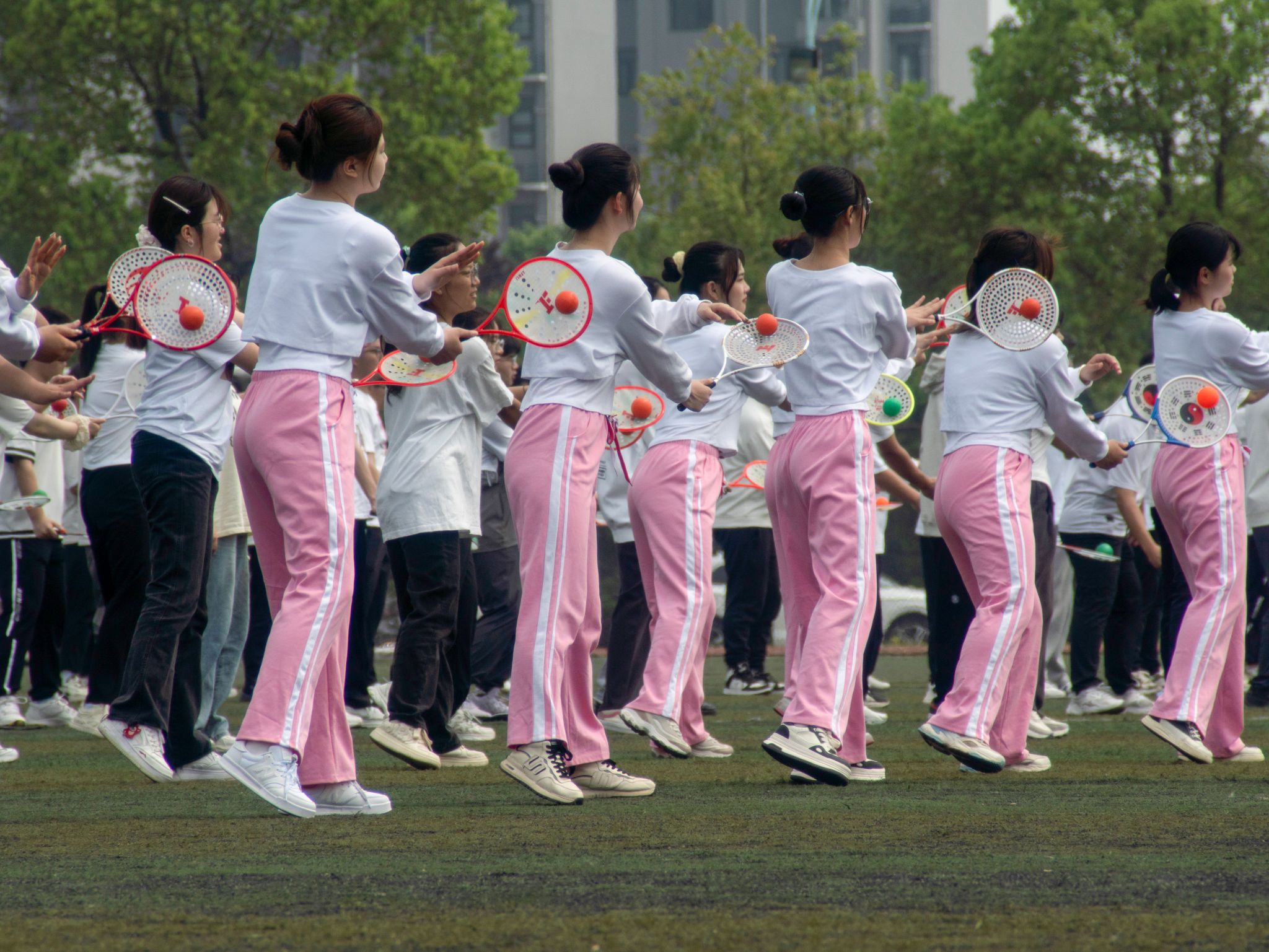 走、滑、转、抛、收……在湖北省柔力球运动协会特约教练周桂玲的教授下,近500名选修柔力球的员工在北园操场进行柔力球展演、学习。据了解,每年公司都会举办类似的大型展演。“我们希望通过开展这样的展演让更多的人爱上柔力球。”beats365教授刘占锋说道。